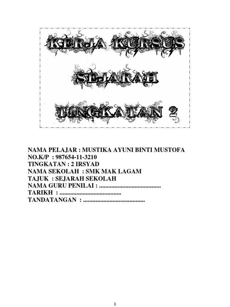 Kerja Kursus Sejarah Tingkatan 2 Jaycectzx